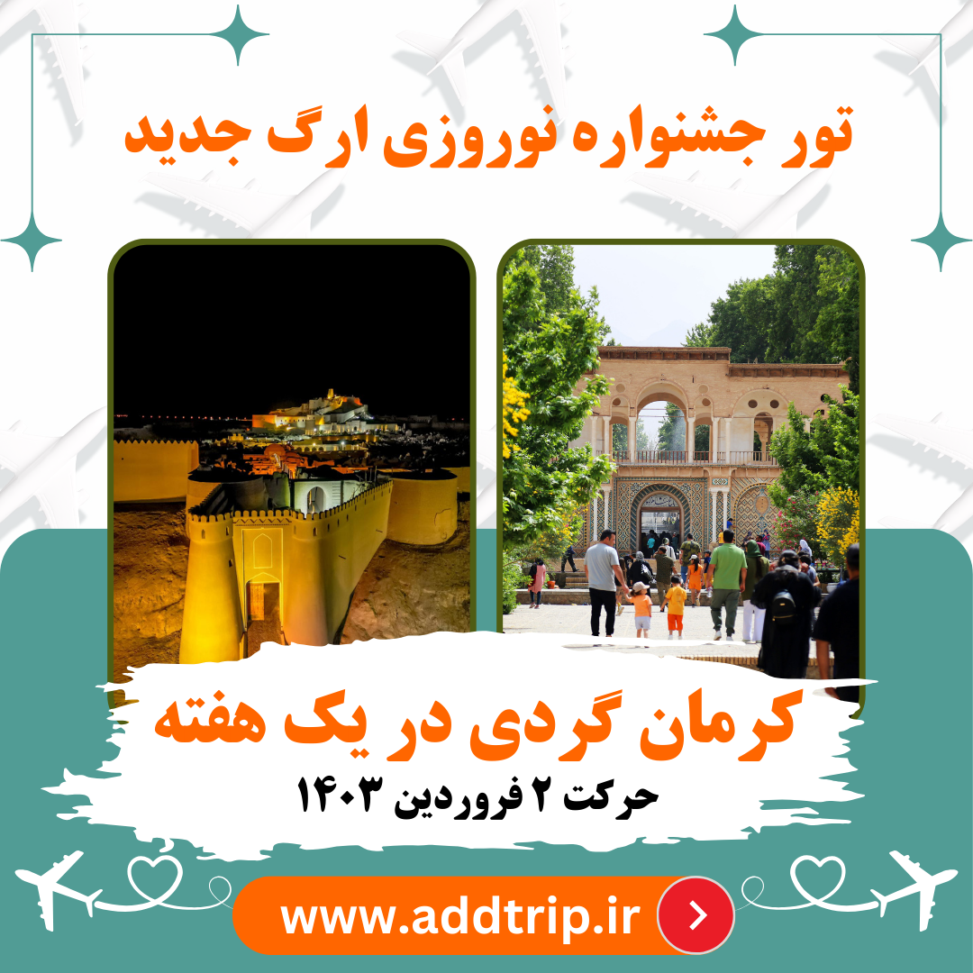 منطقه ارگ جدید بم، مجموعه تفریحی و گردشگری با دریاچه، قایق سواری، اسب سواری، نمایشگاه سوغات بم، برنامه شاد برای کودکان، موسیقی نواحی و محلی بم، اجرای کنسرتهای ملی وکشوری مکانی شاد برای همه مسافران وگردشگران نوروزی فراهم آورده است که دعوت میکنیم از همه مسافران نوروزی از منطقه ارگ جدید بم بازدید کنند.