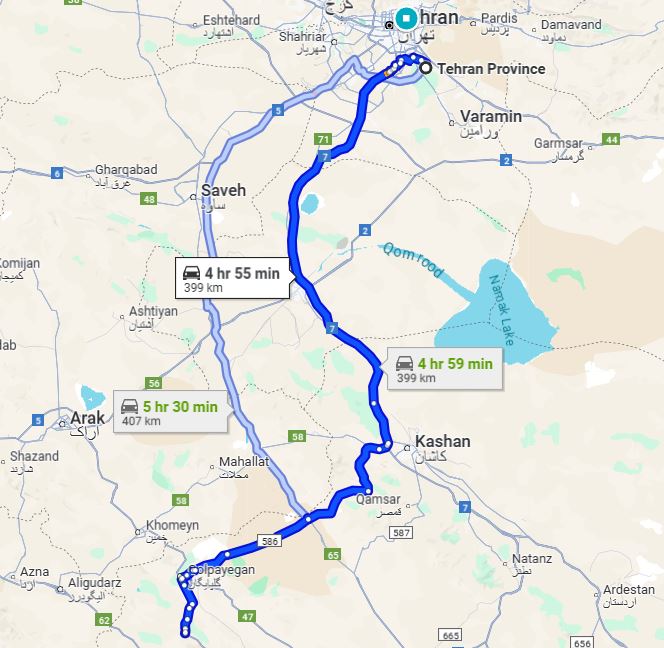 مدت زمان طی مسافت از تهران به سمت خوانسار: حدود 5 ساعت