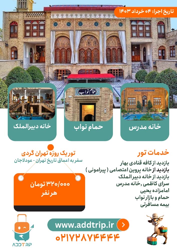 در تهرانگردی از خانه دبیرالملک که عمارتی به سبک اروپایی با قدمت 140 ساله در اواسط دوره قاجار بازدید خواهیم کرد و به حمام نواب به لوکیشن فیلم تاریخی و پر از خاطره قیصر می رسیم، با ما در گذر از تاریخ همراه شوید .