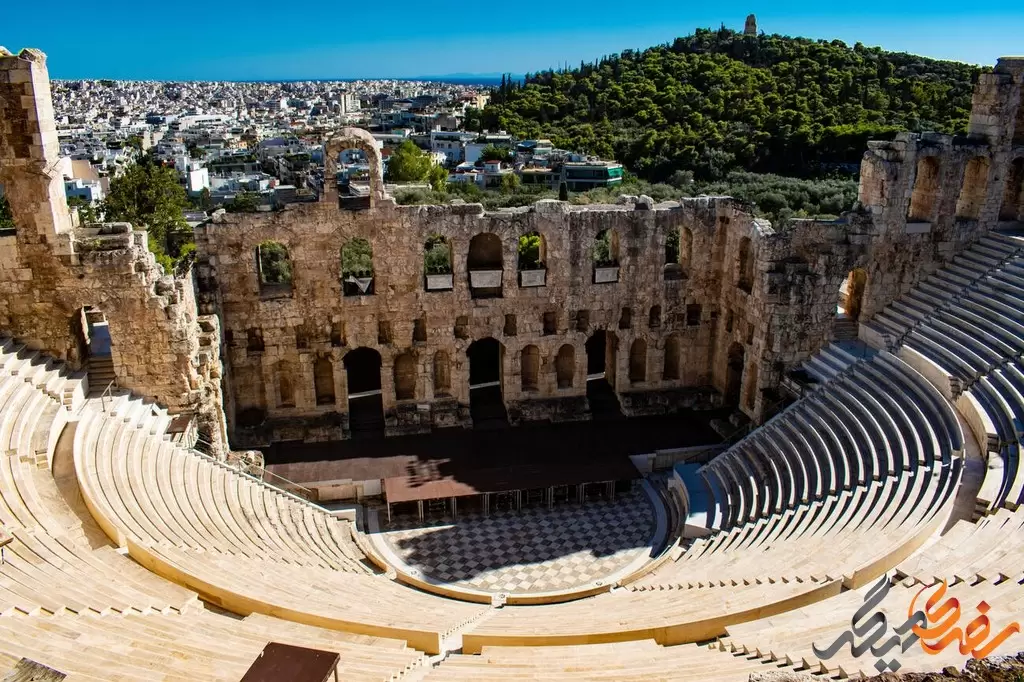 نمای بیرونی سالن تاتر دیونوسوس جايي كه داستان هاي باستان را نجوا مي كند،